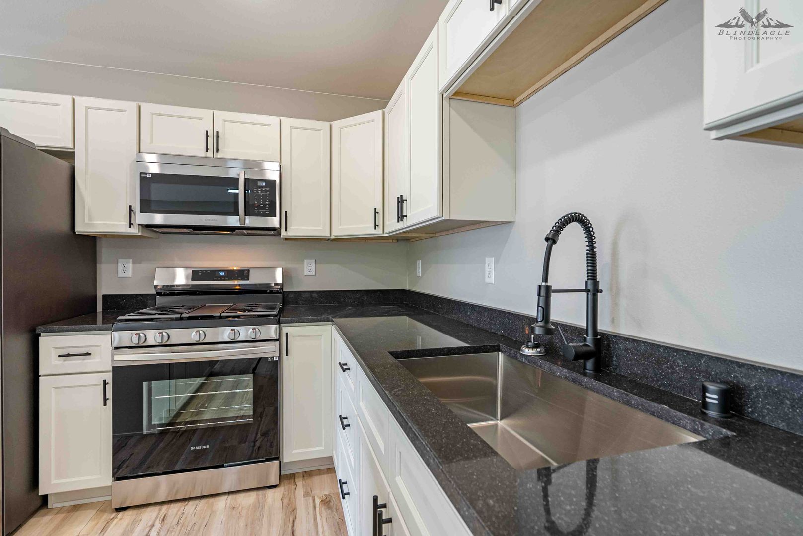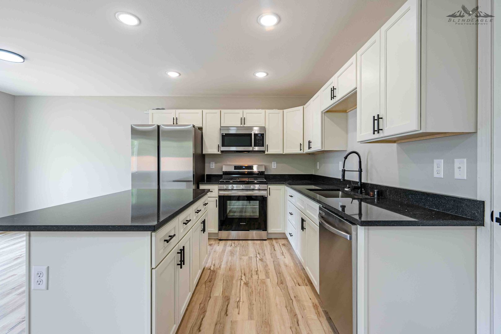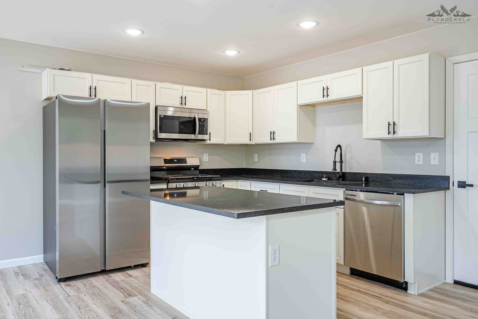 Each of the four units has 1,409 SF of living space, 4 bedrooms, 2 baths, and an oversized one-car garage. LVP throughout the downstairs with an open-concept kitchen, dining, and living room area. Upstairs laundry in the hallway, with access to all 4 bedrooms. Great commuter location and is also not too far out of Wasilla.