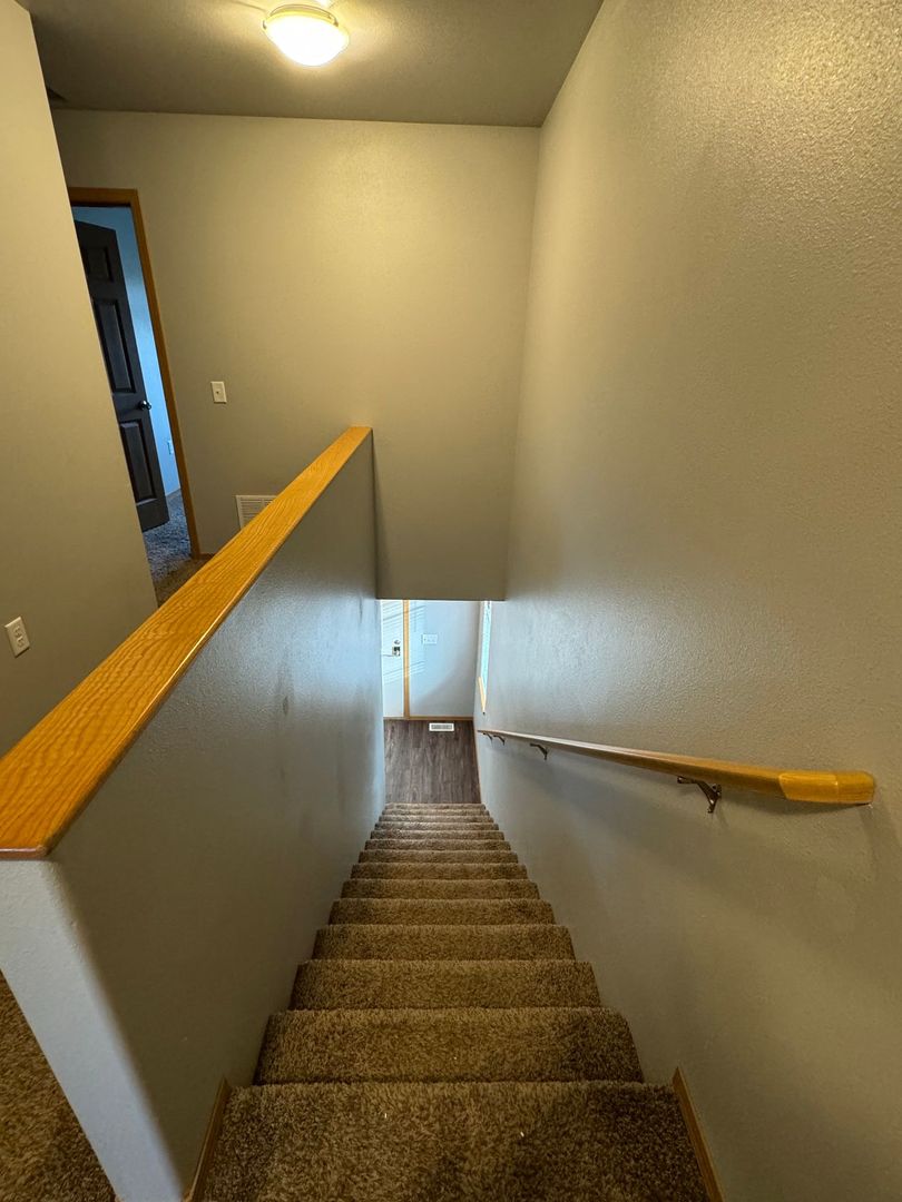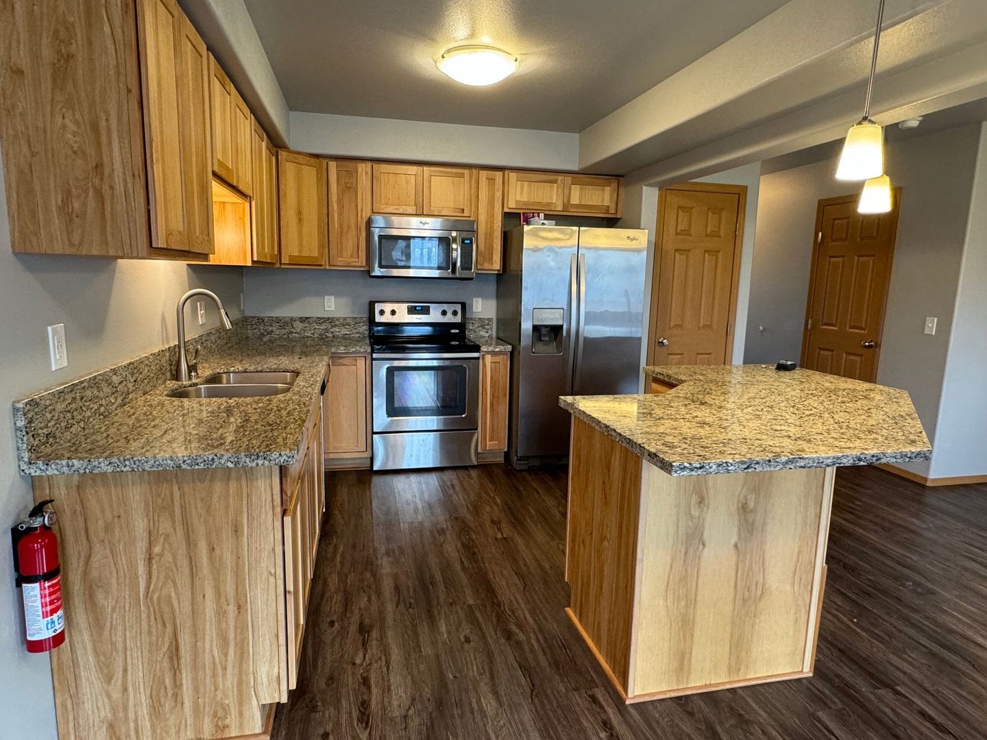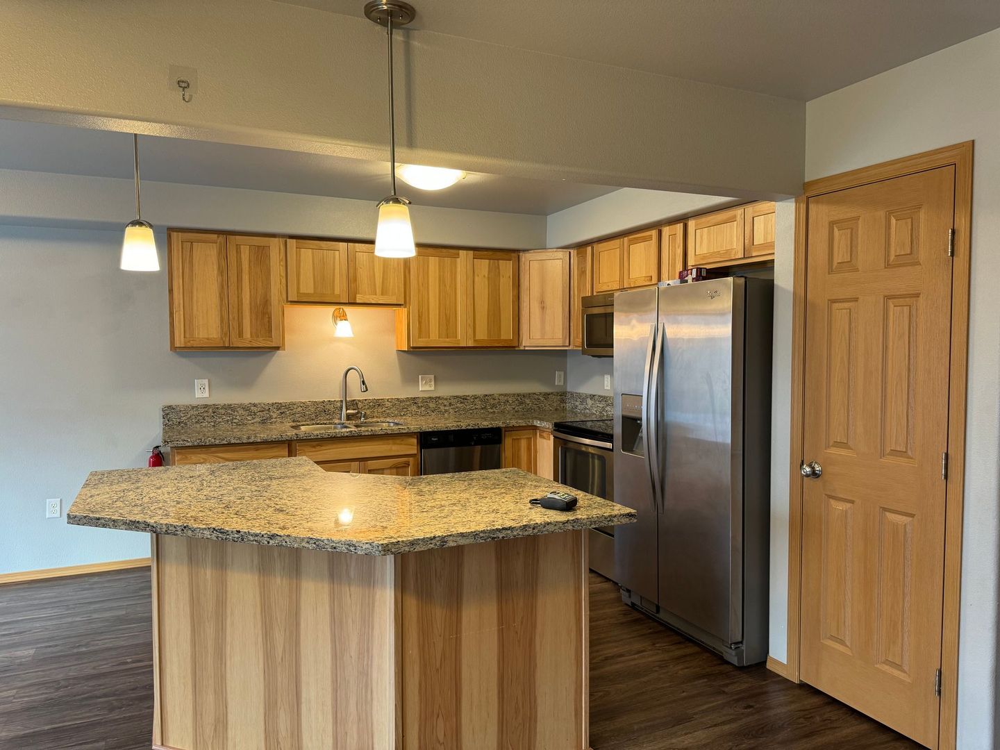 Beautiful 3 bedroom, 2.5 bathroom townhouse unit in spacious 4-plex with lots of parking space and a 1 car garage! Upgraded granite countertops, open kitchen/living room floor plan, spacious bedrooms with lots of natural light, and a fenced yard. Kitchen island, electric range stove, and easy-to-clean vinyl flooring. Stainless steel appliances and a washer/dryer are located in the unit. The back deck is located right off the living room, bringing in tons of natural light! Huge walk-in closet in the master bedroom, which also features a private ensuite bath.