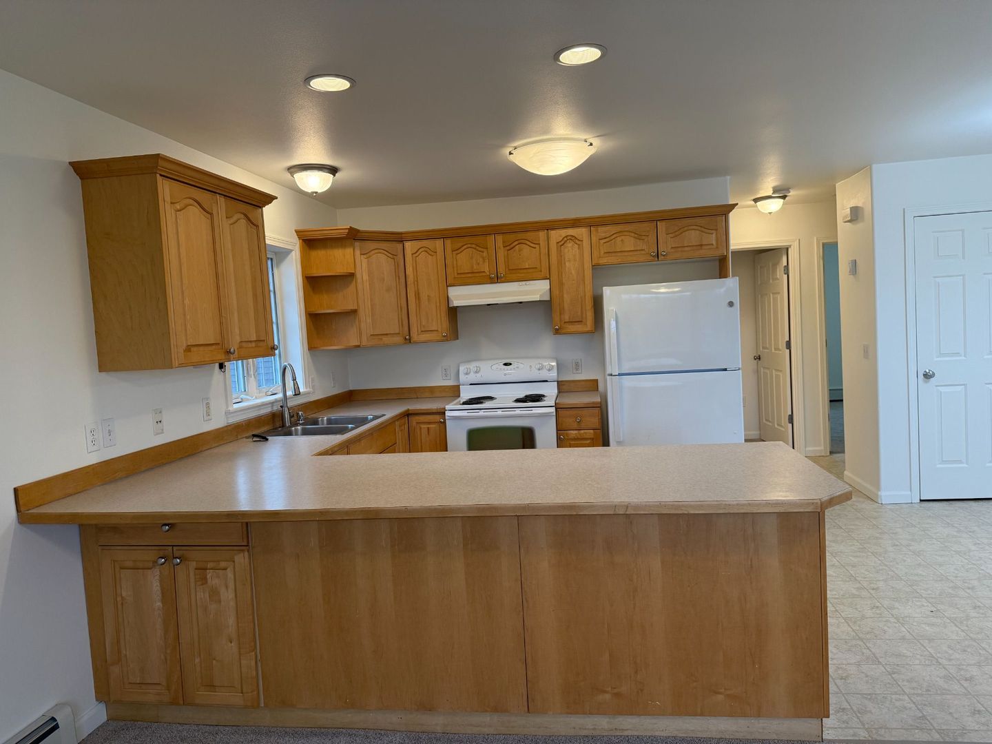 Comfortable and contemporary 2 bedroom, 1 bathroom apartment. Walk into the sunshine beaming into the living room through the triple pane window and gaze out to see the mountain view off in the distance. The spacious kitchen offers a generous amount of storage complete with a pantry, not including the additional cabinet space under the open bar. The washer and dryer are located in the back of the unit.