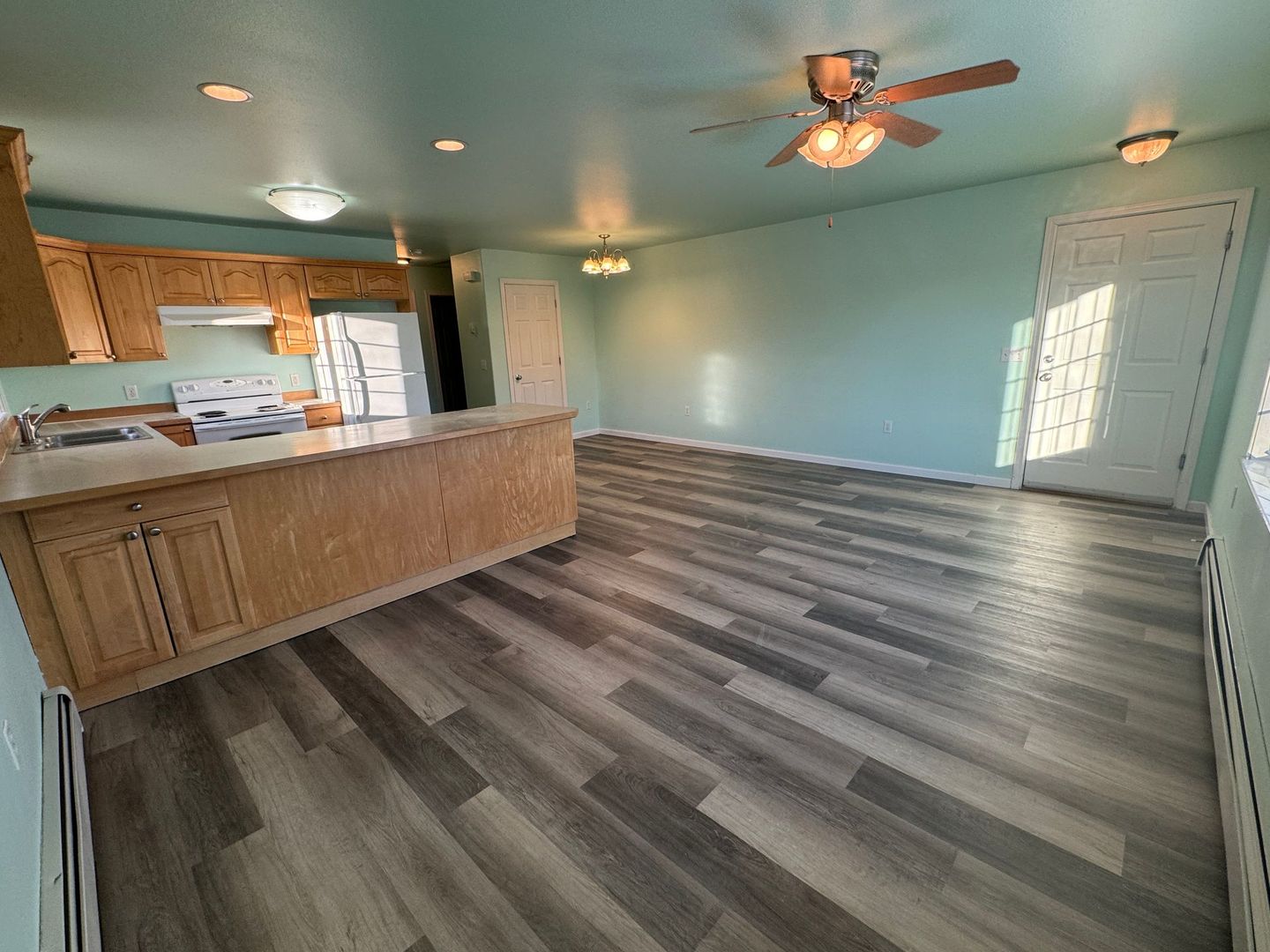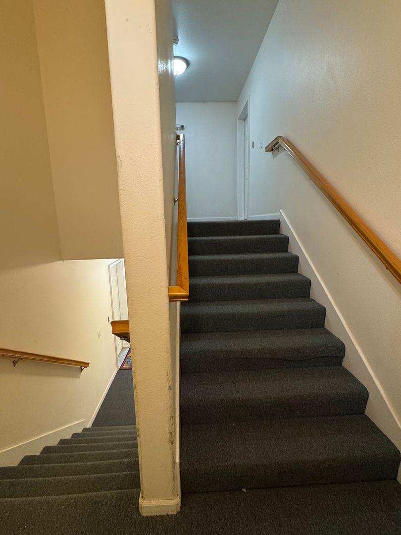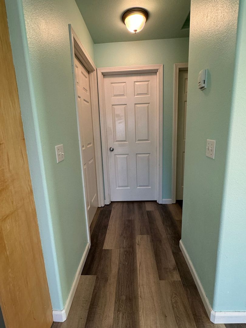 Modern 2‑bed/1‑bath apartment with mountain views. Features triple‑pane windows, spacious kitchen with pantry and bar storage, in‑unit washer/dryer, locked entryway, single‑car garage, and extended backyard.
