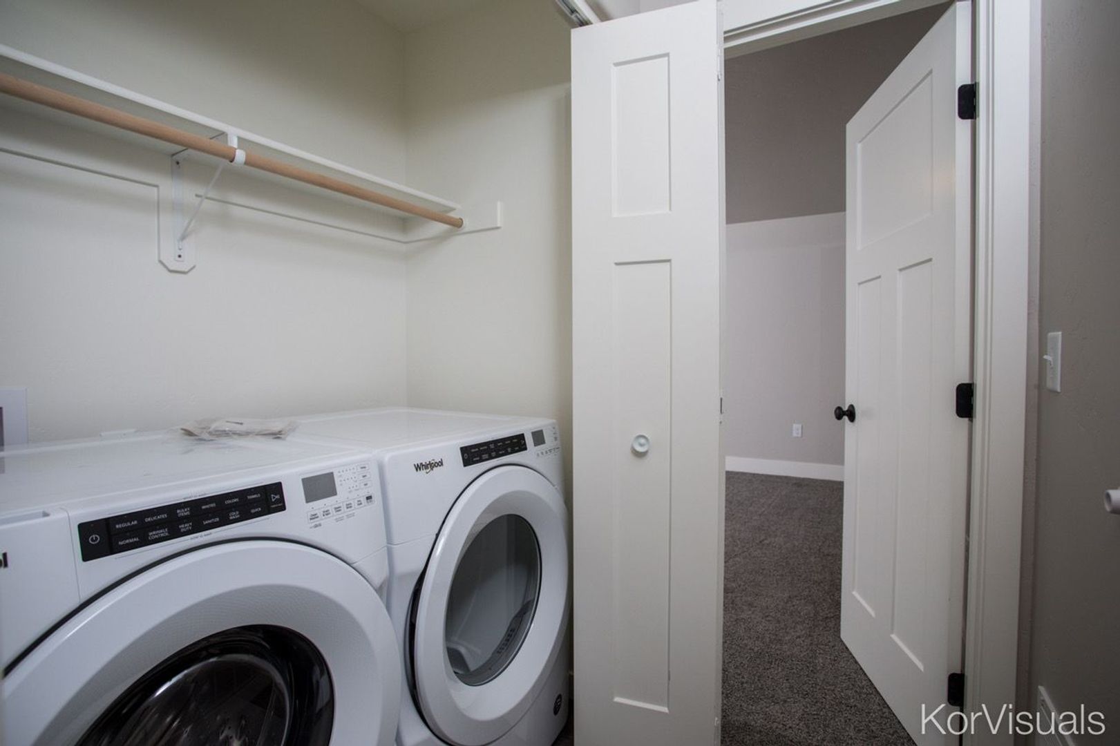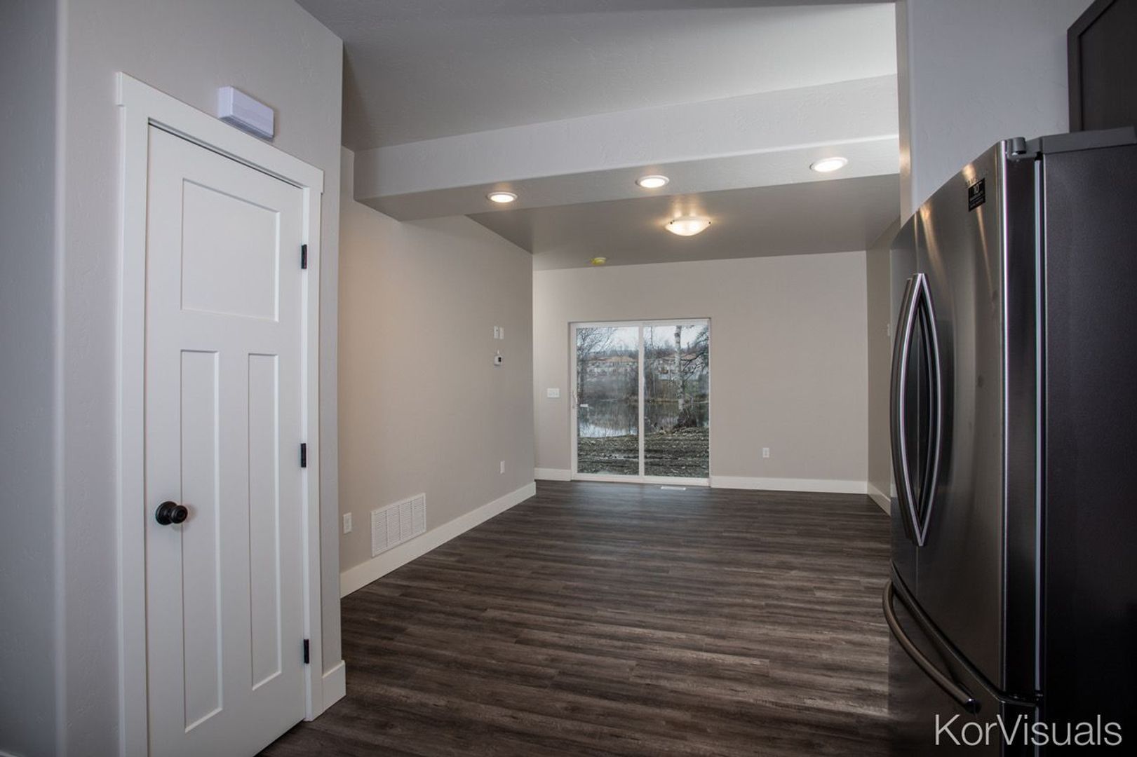 Right in the heart of Wasilla is this gorgeous 2 bed, 1.5 bath unit with an attached 1 car garage. Entering downstairs you will see the open-concept living area with a kitchen and living room. The kitchen is equipped with stainless steel appliances and quartz countertops with windows overlooking the lake. Upstairs are the two bedrooms with walk-in closets and a bathroom. These rooms also have an overlooking view of the lake. These units also have private dock access. Washer and dryer in unit! This is a must-see!